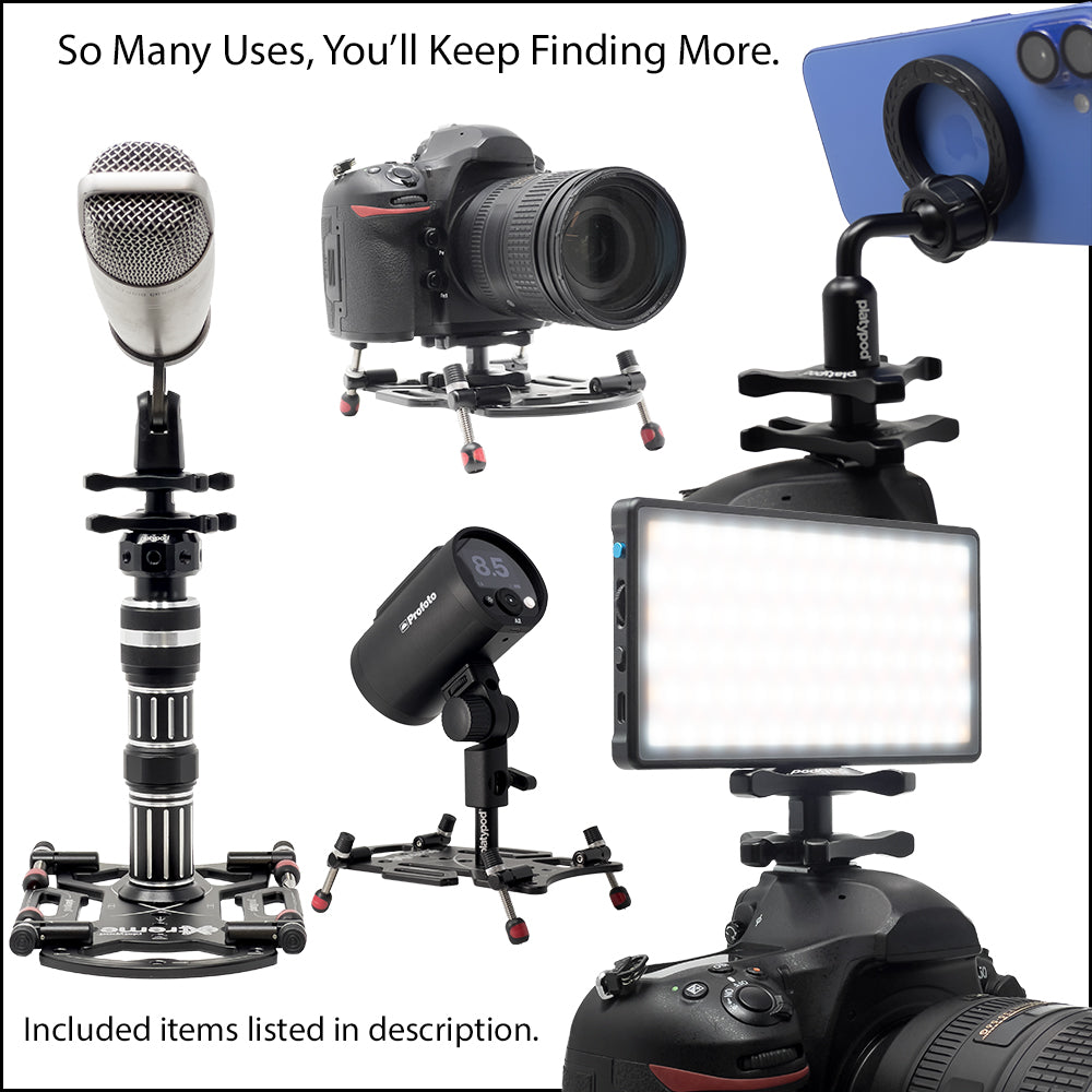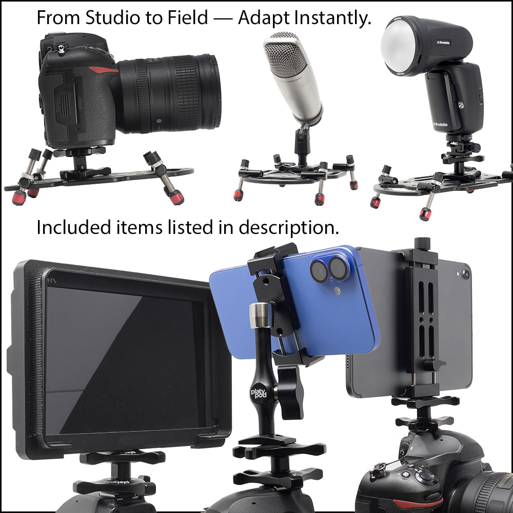 When versatility matters, the Platypod Super Adapter Survival Kit has you covered. Designed for photographers, videographers, and creators who need to adapt fast, this compact kit includes precision-machined adapters, bushings, and mounts that let you connect virtually any accessory — cameras, lights, mics, monitors, or smartphone holders — to your gear, tripod, or Platypod base.